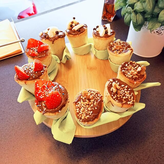 Een heerlijke 4-kazensaus goed gevuld met vers gebakken champignons of ham in een hoorntje uit vers pizzadeeg.