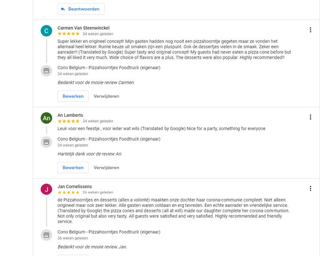 Om de markten van overheerlijke Pizzahoorntjes te voorzien startte CONO BROS in september 2017 met een eetkraampje.